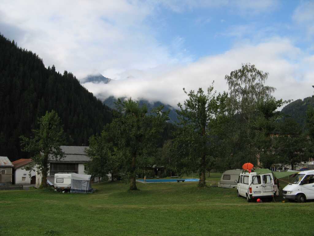 Už na uvítanou nám po cestě z Brna začalo pršet. Ani nás nepřekvapilo, že pršelo dalších zhruba 500 kilometrů cesty. Loni to bylo přece jen celou cestu z Ostravy až do Lindau :) Každopádně cesta proběhla v klidu. Jednak proto, že jsme jeli jako vždy v noci a jednak proto, že jsme to moc nedrtili, přece jen s koly na střeše to nemá cenu nijak uspěchat. Navíc jsme se cestou stavili těsně před naším cílem do bezcelní zóny Samnaun kde jsme chtěli nakoupit pár drobností. Ani nás nepřekvapilo, že kvalitně pršelo a byla zima. Tahle bezcelní zóna je podle mě docela raritka, protože leží zhruba v 1800 metrech nad mořem v malém městečku, kde končí cesta a za ním už se dá jít jen pěšky na nějakou okolní třítisícovku. Všem kteří pojedou z Rakouska přes Landeck (7 km dlouhý tunel) směrem na Švýcarsko rozhodně návštěvu doporučuji. Hlavně se sem vyplatí jet pro kosmetiku nebo alkohol či benzín (na tom se ušetří i když k zóně musíte vystoupat slušný kopec). Vše je tu minimálně o 30% levnější než u nás :) Díky zastávce (asi tak tříhodinové) v Samnaun jsme dojeli do cílového kempu asi po 18 hodinách hrubého času. Ten jsme si našli na internetu a velmi se nám zamlouvala jeho cena:) Poloha samozřejmě taky. Kempík byl v malém městečku (spíš vesnici se 180 obyvateli) jménem Strada, což je v oblasti Engiadina Bassa asi 15 kilometrů od města Scuol na jednu stranu a zhruba 10km od hranice s Rakouskem na stranu opačnou. Cena se pohybovala okolo 17 CHF na den za 2 osoby, stan, auto + poplatky, přičemž v kempu byl zdarma bazén (škoda že jsme ho za čtyři dny pobytu nedokázali v té zimě použít). Teplá voda na nádobí nebo sprchu byla za příplatek, ale paradoxně nižší než v leckterých kempech u nás. Kemp byl pěkný, celkově trošku skromný (žádná společenská místnost, kuchyň), ale nám bez problémů vyhovoval.